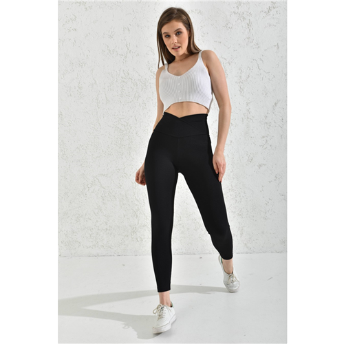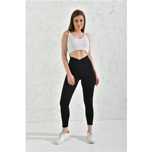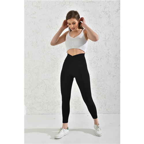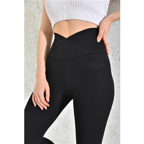 Siyah Yüksek Bel Fitilli Çapraz Kemer Tayt Toparlayıcı