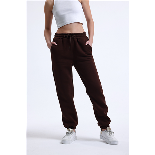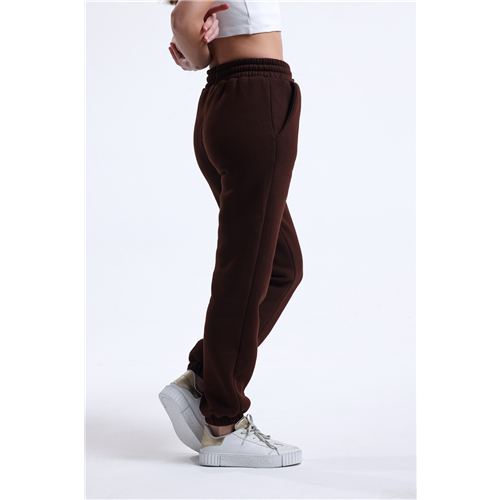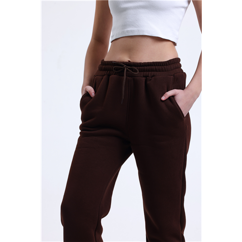 Kadın Kahverengi Paçası Lastikli Cepli Eşofman Altı