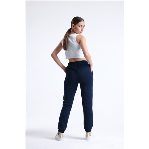 Kadın Lacivert Paçası Lastikli Cepli Eşofman Altı